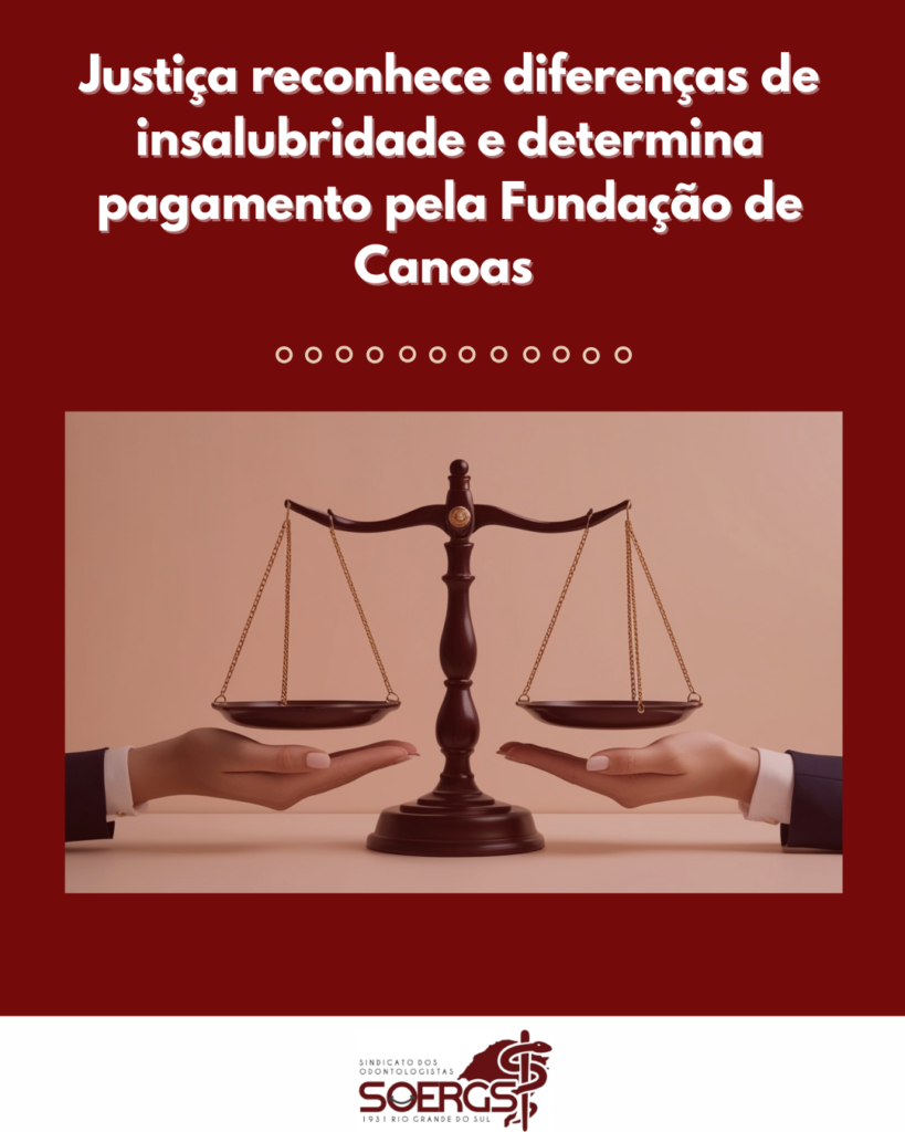 O Sindicato dos Odontologistas do Rio Grande do Sul (SOERGS) obteve uma decisão favorável na ação judicial que trata do pagamento das diferenças de adicional de insalubridade e FGTS aos cirurgiões-dentistas vinculados à Fundação Municipal de Saúde de Canoas. Na decisão, o juiz reconheceu a procedência de parte dos pedidos formulados pelo SOERGS, determinando que […]