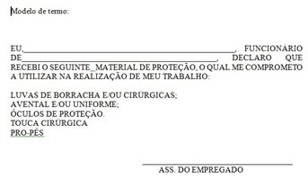 Por isso, não perca mais tempo e não dê chance ao azar. Faça um termo de recebimento de EPI para seus auxiliares e peçam aos mesmos que assinem e ao mesmo tempo exija o uso dos mesmos sob pena de demissão por justa-causa. Sim, pois como a empresa ou empregador tem a obrigação de fornecer o EPI, o funcionário, por sua vez, deve usá-lo em ambiente de trabalho, pois se não o fizer, é falta grave podendo ser demitido por justa-causa. E aos colegas que trabalham em ambiente privado e público exijam seus EPIs de seus empregadores, para sua segurança e a dos seus pacientes.