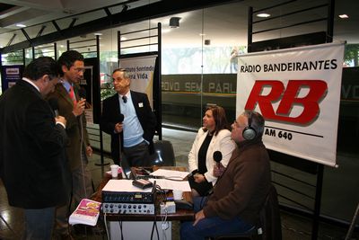 O evento teve a cobertura da imprensa e da rádio Bandeirantes, que fez entrevistas ao vivo, como mostra a foto abaixo onde nossa diretora Sheila R. Vilas Boas aparece com o Dep. Frederico Antunes ; prof. Adair Busato Presidente do CECO e o colega Rubens Garavelo Machado.