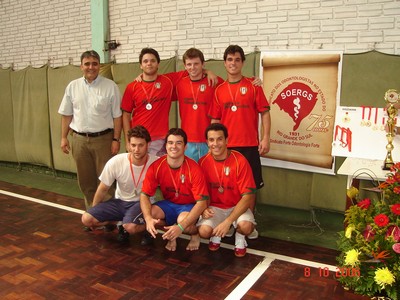 A 2ª copa SOERGS de Futsal foi um sucesso. O dia maravilhoso e radiante foi perfeito para o evento. As torcidas se fizeram presentes e apoiaram os times com muita emoção. O grande campeão do dia foi o time da ULBRA. Numa final emocionante, com lances muito disputados, a ULBRA vence o time da PUC por um placar de 5X3. O 3º lugar coube ao time do CRORS. Parabenizamos também os demais times participantes, que só fizeram engrandecer o evento promovido pelo nosso Sindicato. Do time da ULBRA saíram ainda com medalhas o goleador e o goleiro menos vazado. Fazemos um agradecimento especial à Federação Gaúcha de Futebol de Salão e à Associação Gaúcha de Árbitros de Futebol de Salão (AGAFUSA) em nome do trio de arbitragem que operacionalizou, organizou a tabela dos times e apitou com muita seriedade, competência e profissionalismo todos os jogos. Parabéns ao SOERGS por mais este evento.
