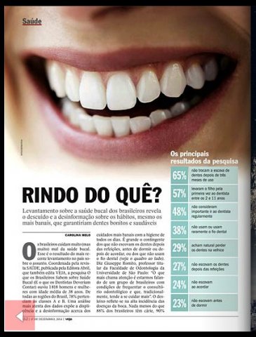 Edição da revista Veja da semana passada (17/12/14) publicou matéria sobre um levantamento dos hábitos de saúde bucal dos brasileiros. Dados publicados são preocupantes. Revelam desinformação sobre aspectos simples.