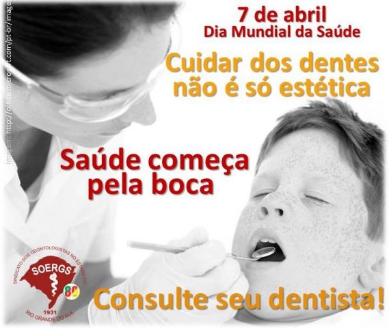 No Dia Mundial da Saúde, comemorado no dia 7 de abril, o Sindicato dos Odontologistas no Estado do Rio Grande do Sul (SOERGS) registra sua preocupação com relação à saúde bucal da população brasileira. E lança o alerta: “Saúde começa pela boca”.