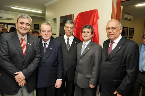 O presidente do SOERGS, Andrew Pacheco, e o diretor, Cléo Saldanha, estiveram em Brasília no dia 12 de agosto para a cerimônia de inauguração da nova sede da Federação Nacional dos Odontologistas (FNO). Além do coordenador nacional de Saúde Bucal Gilberto Pucca, participaram da solenidade os presidentes do Conselho Federal de Odontologia (CFO), Ailton Diogo Morilhas Rodrigues, da Associação Brasileira de Odontologia (ABO Nacional), Newton Miranda de Carvalho, da Federação Interestadual dos Odontologistas (FIO), Welington Moreira Mello, da Confederação Nacional das Profissões Liberais (CNPL), Francisco Antonio Feijó, da União Geral dos Trabalhadores (UGT), Ricardo Patah, e representantes da Associação Brasileira de Cirurgiões-Dentistas (ABCD), entre outros.